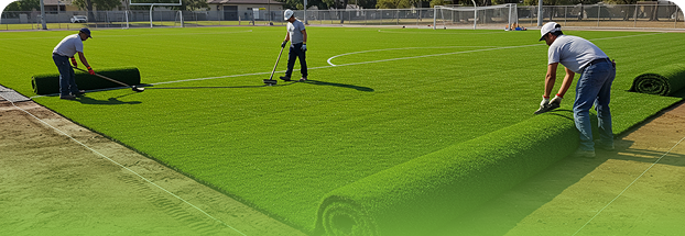 - تركيب عشب صناعي وطبيعي بجودة عالية